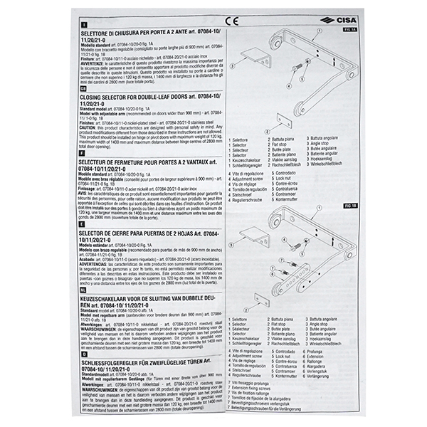 Описание Координатор закрывания CISA 07084.10 для двухстворчатых дверей
