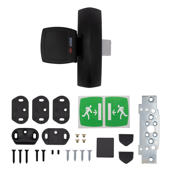CISA 59061.10 – антипаника накладного монтажа из серии Fast Push-pad. Имеет 1 точку замыкания в виде защелки (язычка), поэтому не требует отдельного врезного замка. Также в конструкции предусмотрены крепления для дополнительных защелок, что создает возможность управления тремя точками замыкания. При необходимости язычок можно заглушить комплектной заглушкой и использовать механизм управления только дополнительных защелок.