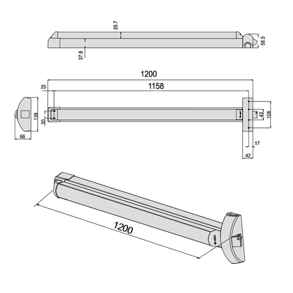 Данная антипаника предназначена для установки на стеклянные, стальные, алюминиевые, металлопластиковые и деревянные конструкции эвакуационных выходов. Подходит для полотен весом до 400 кг, высотой до 3,57 м и шириной до 1,6 м. Совместима с одно- и двустворчатыми вариантами. При необходимости может использоваться и для противопожарных полотен.