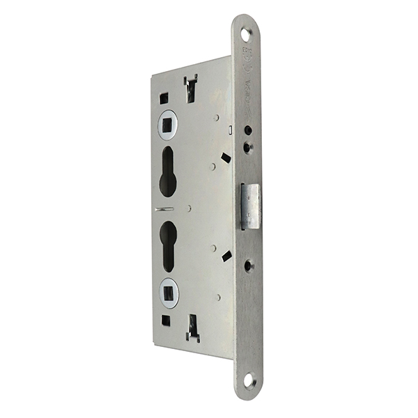 Принцип действия следующий: с внутренней стороны двери язычок врезного замка всегда открывается простым нажатием на горизонтальную клавишу-ручку, обеспечивая быстрый выход. Снаружи открывание будет происходить внутренним электромотором после успешного срабатывания считывателя (происходит подача кратковременного импульса). К примеру, это может быть кодонаборная панель, считыватель карт, домофон и т.д. Под клавишей на моторе можно настроить время, в течение которого язычок будет открыт – от 3 до 30 секунд. Также при замкнутом выключателе (постоянной подаче питания) ручка будет оставаться открытой. Она закроется только после размыкания выключателя. Также снаружи может управляться механически сердцевиной и нажимной ручкой.