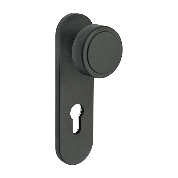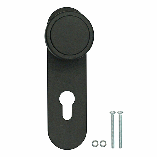 Ручка фиксированная. Внутренняя плата изготовлена из стали, наружная пластина и ручка из качественного пластика. Планка глухая – не имеет отверстия под сердцевину. В трендовом черном цвете будет прекрасно подходить к дверям темного оттенка или как акцентный элемент фурнитуры к светлым полотен.