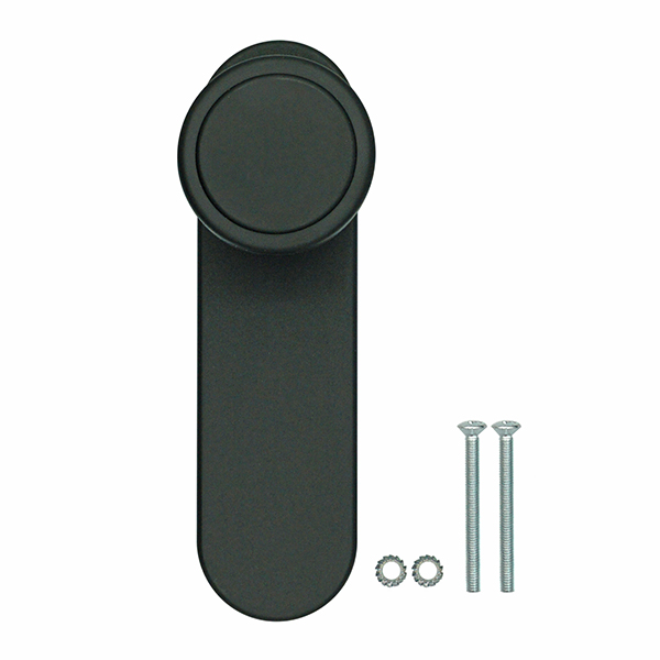Ручка фиксированная. Внутренняя плата изготовлена из стали, наружная пластина и ручка из качественного пластика. Планка глухая, то есть не имеет никаких отверстий. В трендовом черном цвете будет прекрасно подходить к дверям темного оттенка или как акцентный элемент фурнитуры к светлым полотен.