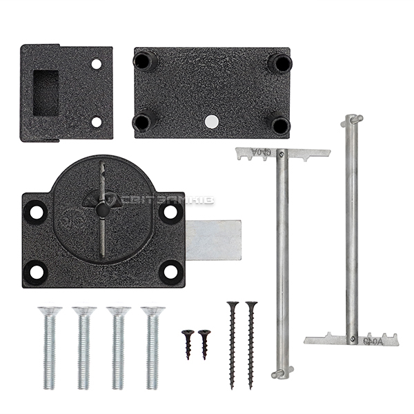 Корпус виготовлений з цинкового сплаву. Це міцний та стійкий матеріал, який чудово протистоїть утворенню корозії та різним погодним умовам. Його можна використовувати як всередині будівлі, так і на вулиці. Основним елементом даного замка є ригель, який рухається за допомогою секретного механізму. Секрет складається з двох дисків, на яких розташовані штифти. Ключ замку має спеціальні виступи, які під час прокручування повертають диски в необхідне положення і ригель висувається. Замок має один прямокутний сталевий ригель.
