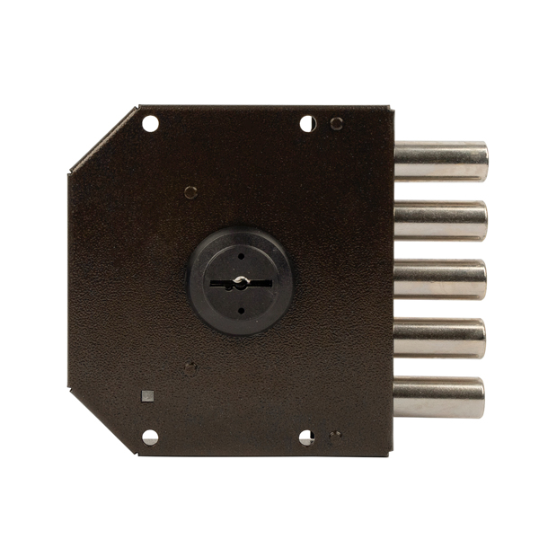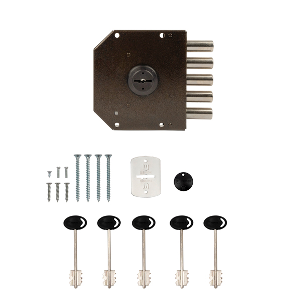 SHERLOCK 06.51-K65 – это 5-ригельный замок. Устанавливается НАКЛАДНЫМ способом на дверное полотно. Используется на входных деревянных и металлических дверях квартир или домов. Также его часто выбирают для монтажа в гаражах или складских помещениях, где установить врезной замок нет возможности или это не целесообразно.
