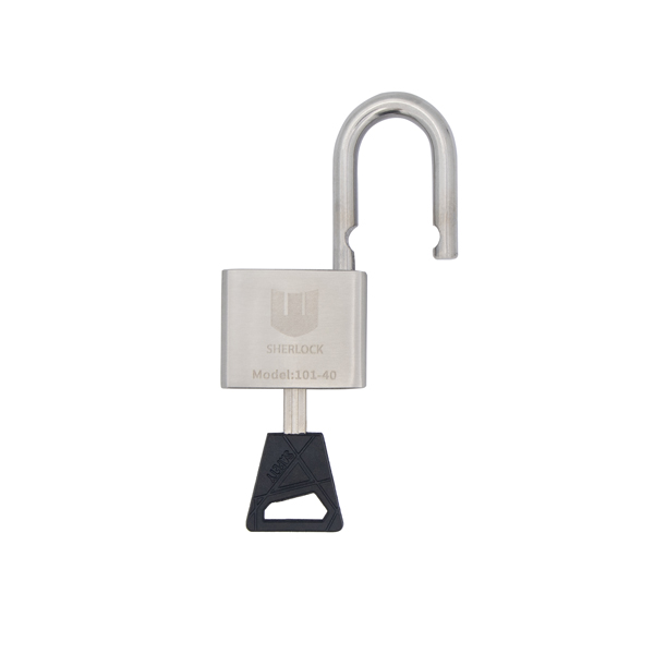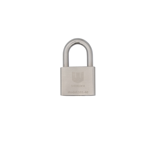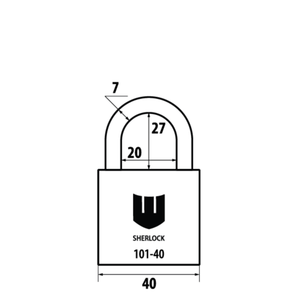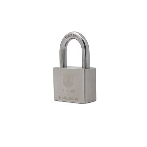 SHERLOCK 101-40 - навесной замок дугообразного типа с высоким уровнем защиты. Он имеет неразборную конструкцию - дужка не отделяется от корпуса. Она прочно фиксируется с двух сторон.