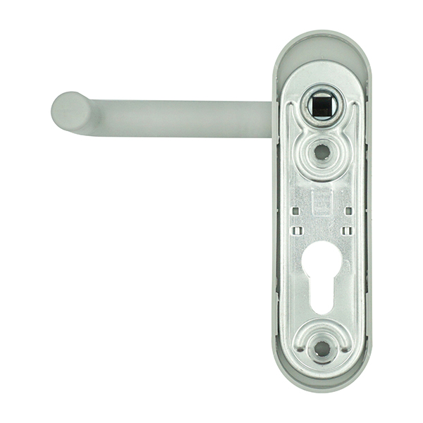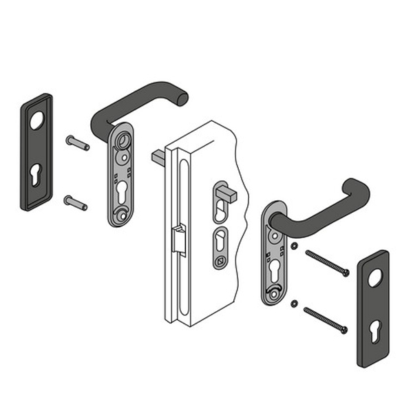 Особенностью конструкции является отсутствие собственной возвратной пружины. Возврат ручки в исходное положение обеспечивается пружинным механизмом врезного противопожарного замка. Такое решение повышает общую надежность системы, поскольку уменьшает количество механических элементов, которые могут со временем выйти из строя. Важным преимуществом модели является ее универсальность – ручки полностью симметричны и подходят как для левостороннего, так и для правостороннего открывания дверей.