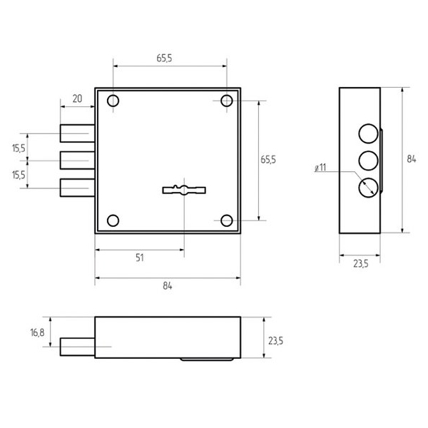 SHERLOCK 04.03 – это накладной замок. Он предназначен для использования в мебельных, офисных и вооруженных сейфах. Из-за отсутствия торцевой планки его можно монтировать методом укладки. Механизм закрывания состоит из специальных сувальд.