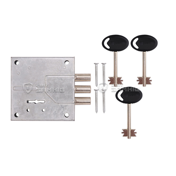 Корпус сделан из стали. Закрывание производится двумя цилиндрическими ригелями диаметром 15,5 мм. Их полный выход составляет 20 мм. В комплекте присутствуют 3 ключа.