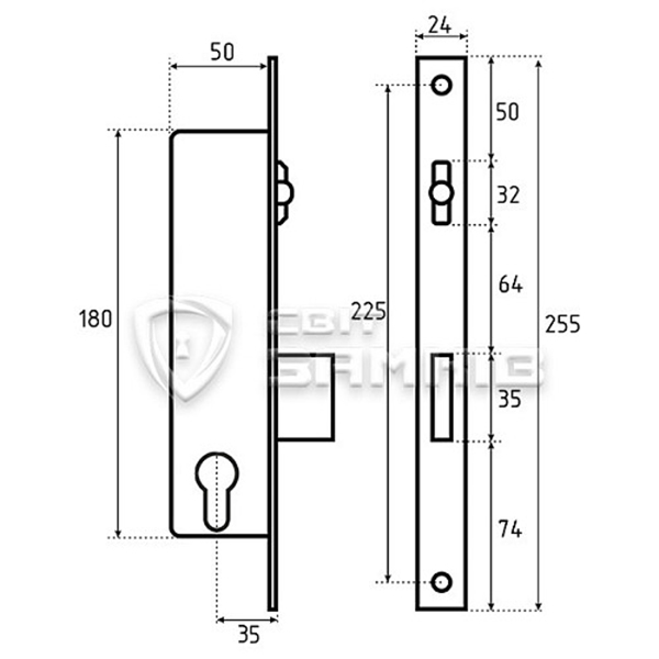 BKS GU – это врезной немецкий замок. Его главная особенность – широкая торцевая планка (24 мм). Поэтому он устанавливается на дверь из алюминиевого профиля. Узкий корпус врезается в полотно и незаметен снаружи. Устанавливается как на левую так и на правую дверь.