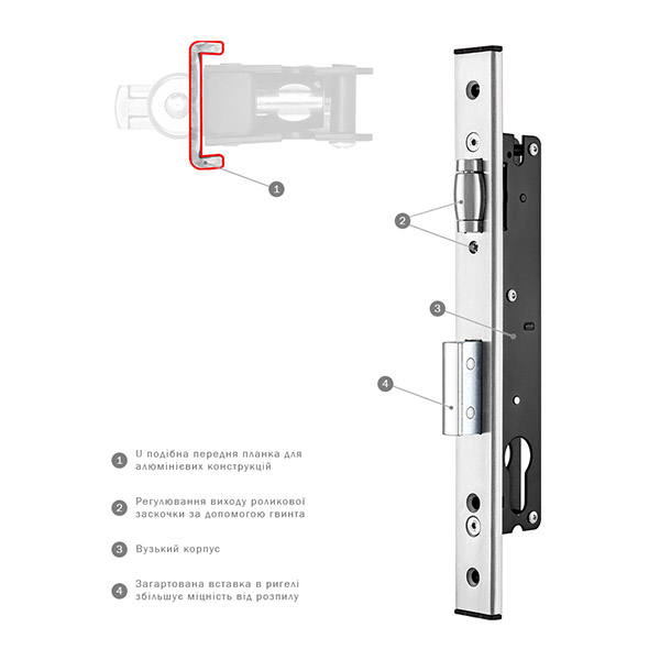 • Ригель имеет закаленную вставку.