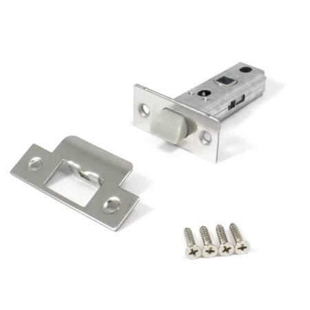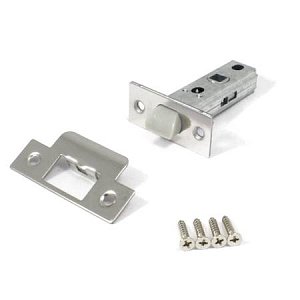 Эконом вариант замка, который фиксирует дверь на язычок и не имеет функции замыкания. Устанавливается на межкомнатные двери. Бесшумный пластиковый язычок обеспечивает тихое закрывание даже без нажатия ручки.
