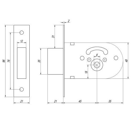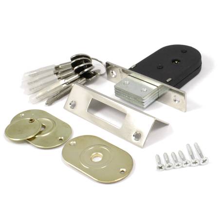 Замок который устанавливается для дополнительного закрывания или в дверь в которых нет места под установку громостких замков и не имеет потребности в управлении ручкою.В замке установлен ригиль с многослойной стали, даже со своими малыми размерами обеспечивает надежное закрывание.