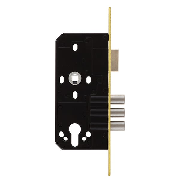 Замок SANTOS 985 - это 3-х ригельный основной врезной замок, который устанавливается на входную дверь из металла и дерева. Полный выход ригелей диаметром 14 мм составляет 21 мм. Управляется ручками и сердцевиной стандарта EURO DIN. Она в комплект не входит и докупается отдельно в зависимости от ваших потребностей. Торцевая планка изготовлена из латуни. Благодаря реверсивному язычку подходит как для лево, так и правосторонних дверей. Механизм замка имеет защиту в виде закаленной пластины.