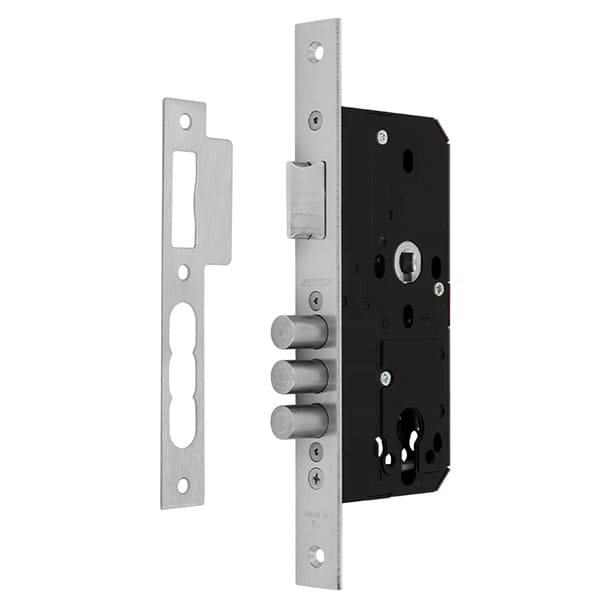 Замок SANTOS 990 - это 3-х ригельный основной врезной замок, который устанавливается на входную дверь из металла и дерева. Полный выход ригелей диаметром 14 мм составляет 21 мм. Управляется ручками и сердцевиной стандарта EURO DIN. Она в комплект не входит и докупается отдельно в зависимости от ваших потребностей. Торцевая планка изготовлена из нержавеющей стали. Благодаря реверсивному язычку подходит как для лево, так и правосторонних дверей. Механизм замка имеет защиту в виде закаленной пластины.