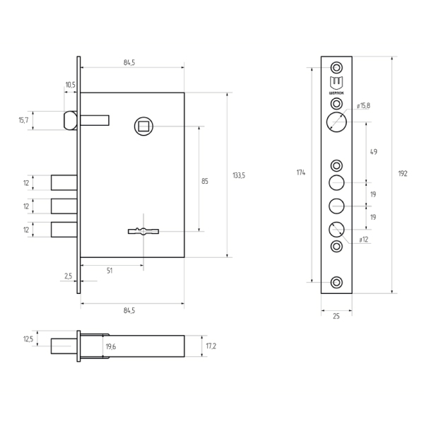 • Размеры замка –84,5x133,5 мм.