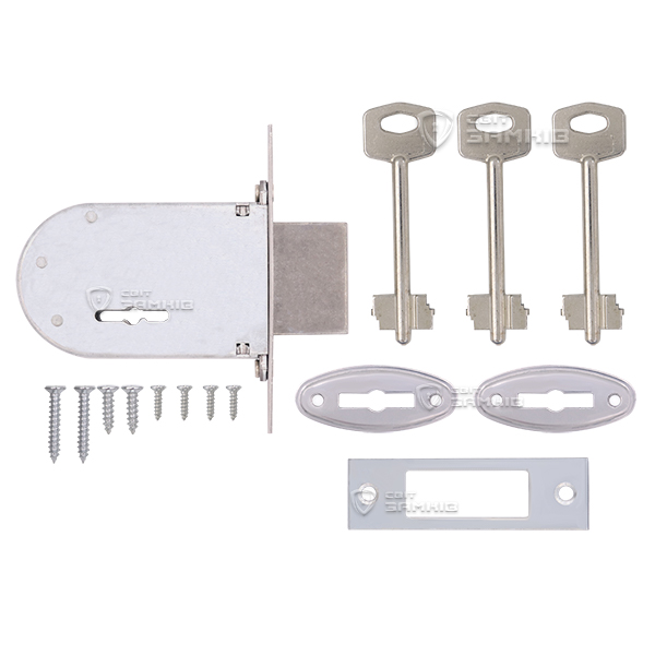 Закрывание производится одним прямоугольным ригелем из стали. Он надежно фиксирует дверь, обеспечивая достаточный уровень безопасности. Полный выход составляет 23 мм. Данный замок идеально подходит для установки в качестве дополнительного замка в металлическую или деревянную дверь квартир, домов, гаражей или коммерческих помещений. В данной версии в комплектации 3 ключа.