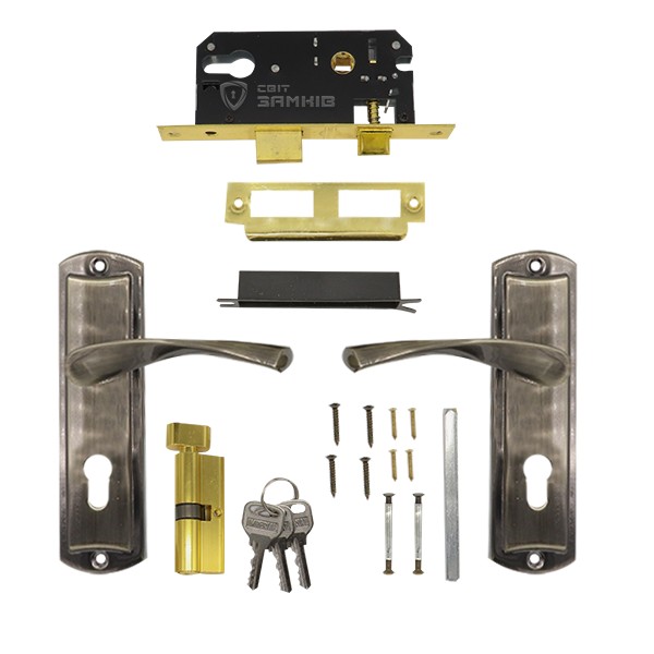 Комплектность замка механизм + ручки + сердцевина