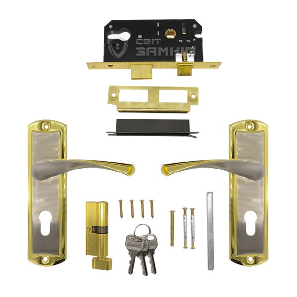 Комплектность замка механизм + ручки + сердцевина