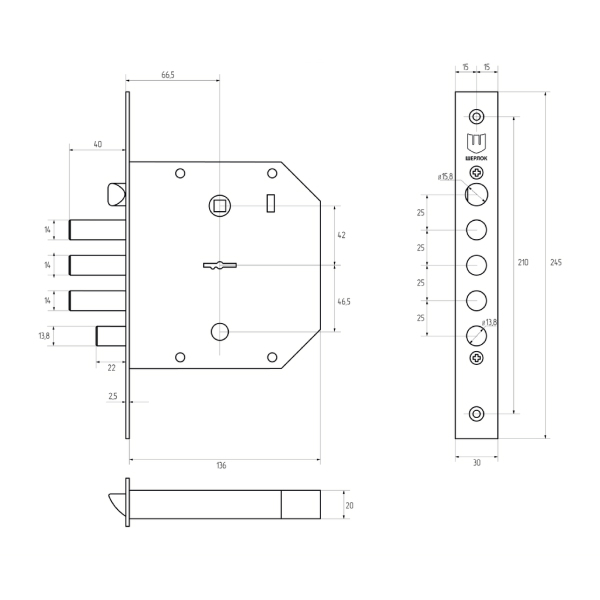 Механизм замка HORST HR-06S (BS66,5*42мм) правый