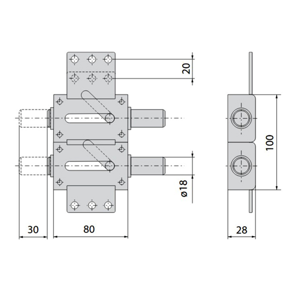 • Оснащен двумя круглыми стальными ригелями Ø18 мм.
