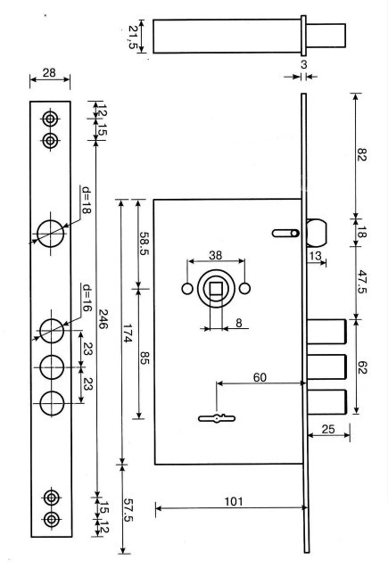 • Корпус замка взаимозаменяем с другими замками серии: CLASS 252L, KALE 252 RL.