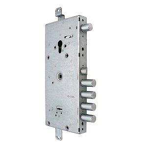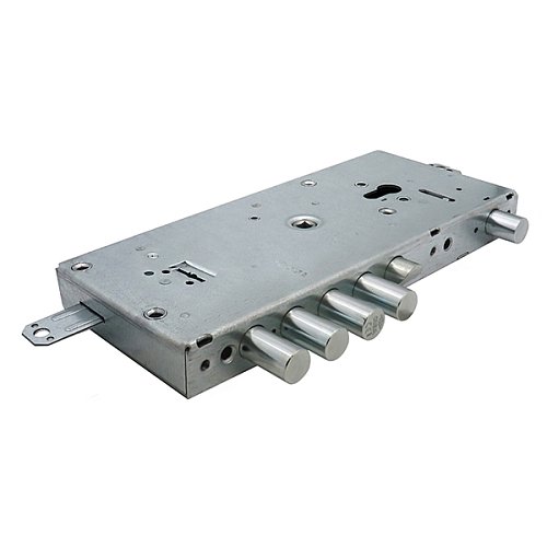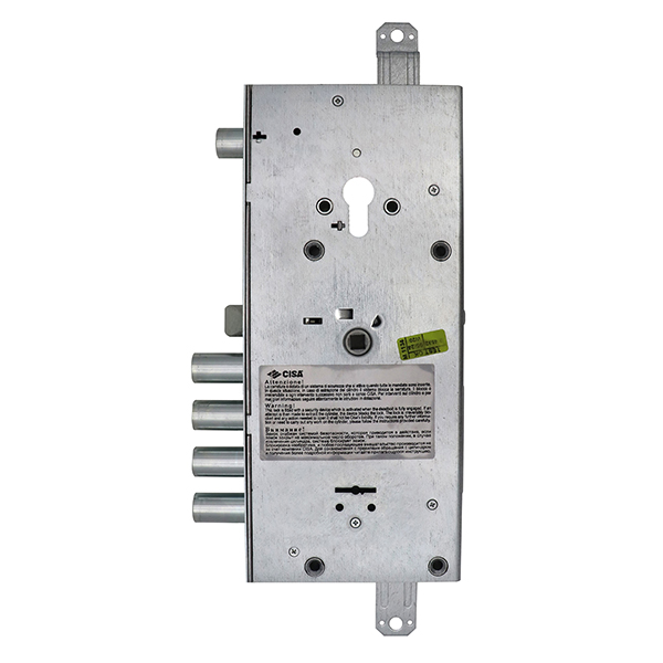 Корпус замка CISA 57965 ALPS сочетает в себе две системы замыкания – сувальдным ключом и цилиндром. Пользуется популярностью для установки на входной металлической двери весом до 200 кг. Нижние четыре ригеля управляются сувальдным ключом. Верхний ригель – цилиндр, который в комплект не входит. Оба механизма работают независимо друг от друга.