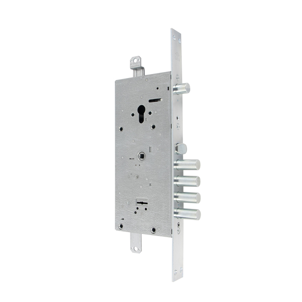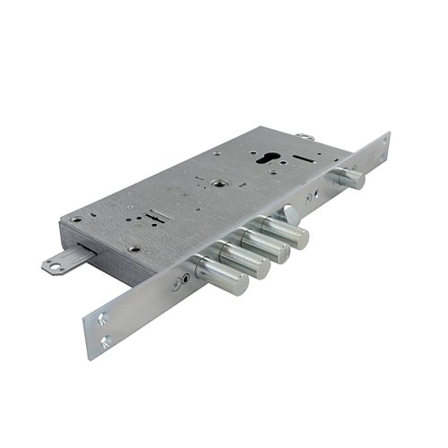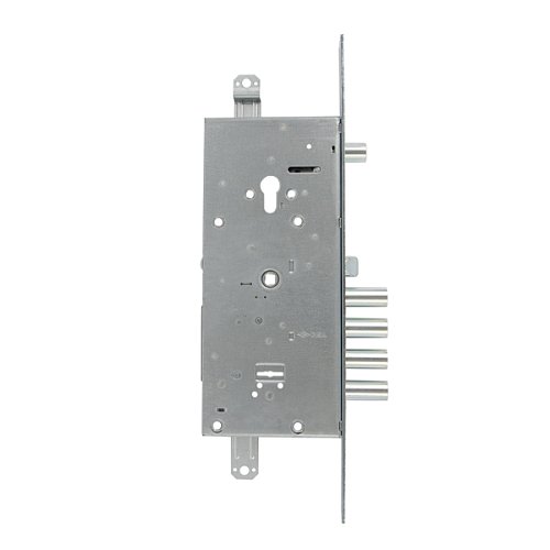 Замок CISA 57986 ALPS – это надежное решение, совмещающее два независимых механизма замыкания: сувальдный ключ и цилиндрический механизм (последний в комплект не входит). Такая конструкция делает его идеальным выбором для входных металлических полотен, в том числе тяжелых бронированных дверей весом более 200 кг. Четыре нижних ригеля работают под управлением сувальдного ключа, тогда как верхний ригель контролируется цилиндром. Независимость механизмов позволяет их использовать отдельно для повышения удобства и безопасности.