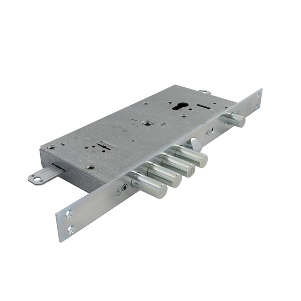 Ригели замка рассчитаны на высокие механические нагрузки: они выдерживают фронтальное давление до 1000 кг и боковое – до 600 кг. Дополнительную прочность обеспечивает каленая стойка и набор пластин, которые эффективно предотвращают высверливание.