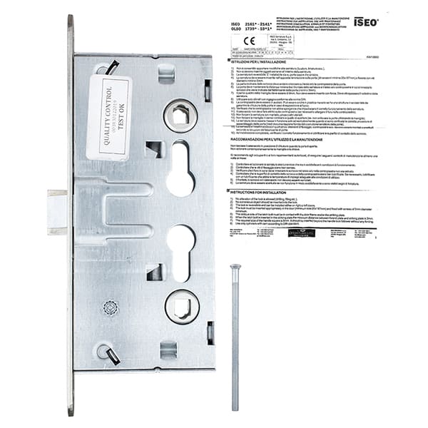 ISEO 216120654 – це врізний замок, який призначений для використання в протипожежних дверях. Виготовляється в Італії. Встановлюється в вхідні металеві дверні полотна. Має замикаючі ригелі та язичок. У відкритому стані замок відмикається натисканням на ручку з будь-якої сторони дверей. У зачиненому стані з обох боків ручка має вільний хід (натискається, але замок не відмикається). Ключем замок відчиняється з будь-якого боку дверей завжди. Серцевина стандарту EURO DIN в комплект НЕ входить та обирається в залежності від Ваших потреб.