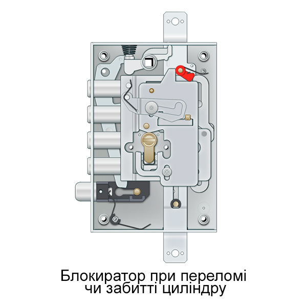 • Защита от силового излома – корпус замка стягивается винтами с двух сторон.