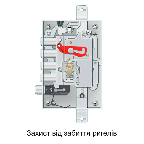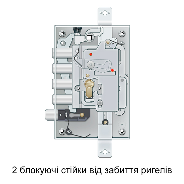 • Защита от забивания ригелей – 2 блокирующих стойки на ригельной пластине.