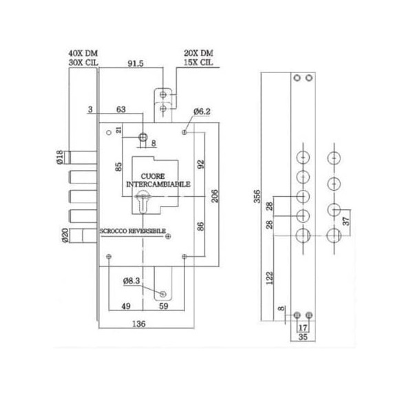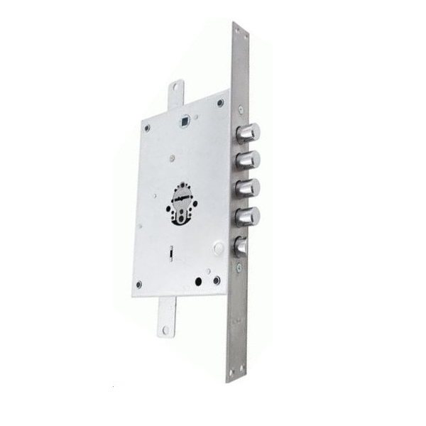Уникальный механизм врезного замка SECUREMME 2503 это 4-х ригельный основной сувальдный замок с защелкой, который управляется ручкой и предназначен для установки в левосторонние входные металлические двери. Уникальность данного замка заключается в возможности замены сувальдный части механизма на цилиндрическую (нуклео). Таким образом, в случае потери ключа или при желании использования сердцевины вместо сувальдного механизма не нужно будет менять весь замок. Также специалисты ценят данный замок за защиту от отмычек и высверливания.