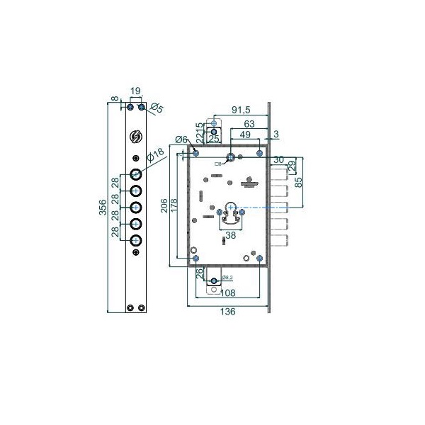 Итальянский врезной замок SECUREMME 2663 GXX используют для установки в дверных полотнах с металла как дополнительный верхний. Управляется он цилиндровым механизмом, который не входит в комплект и подбирается отдельно. Как и другие замки SECUREMME с редукторной системой работы основного механизма, модель 2663 GXX плавная и бесшумная в работе. За счет этого довольно популярна.