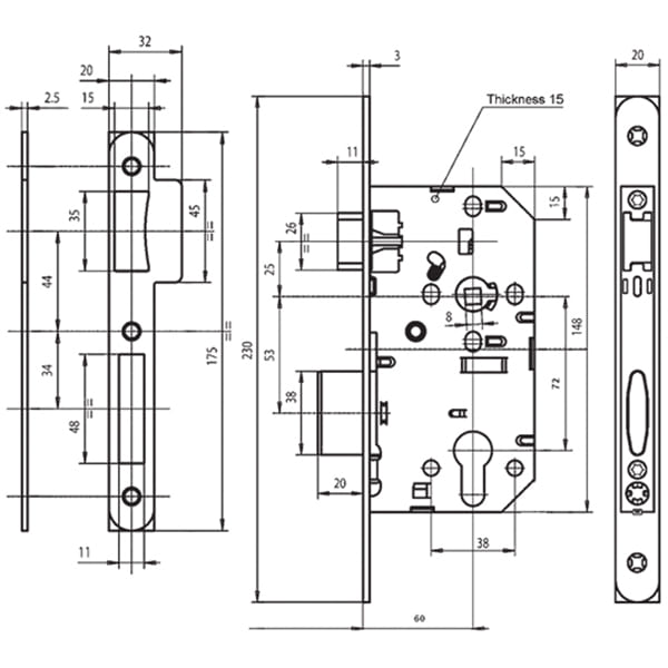 Механизм замка SHERLOCK 30.11 (BS67,5*77мм) 5 ключей