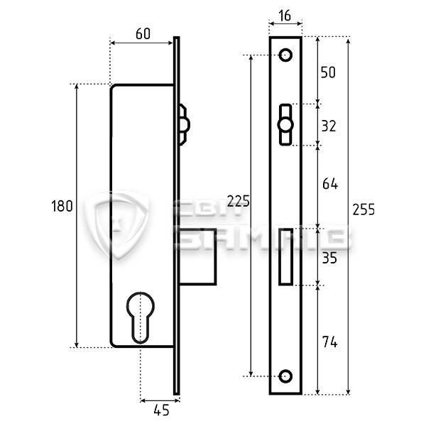• Замок подходит на правые и левые двери.