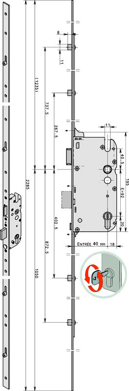 Механизм замка GU Secury R4 защелка 40*92 мм рейка 2285 мм