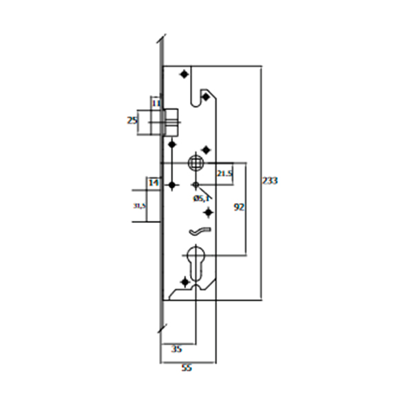 Механизм замка CISA 44661.30.0.20 язычок (BS30*85мм, 22 мм) нержавеющая сталь