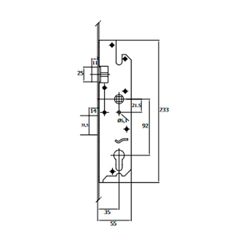 Описание Механизм замка VHS защелка 35*92 мм рейка 2000 мм с ригелем