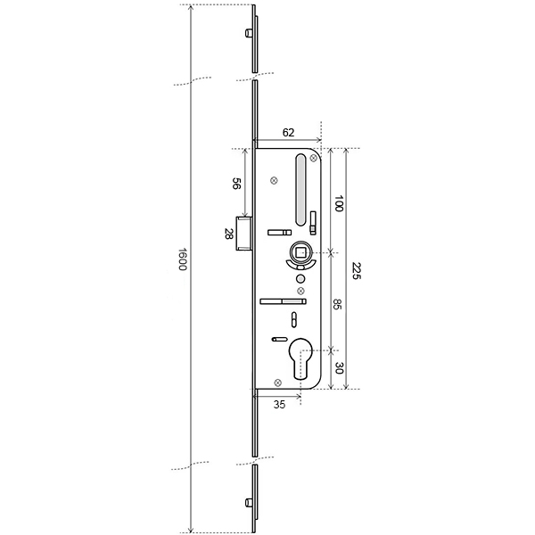 Механизм замка VORNE защелка 35*85 мм рейка 1600 мм без ригеля