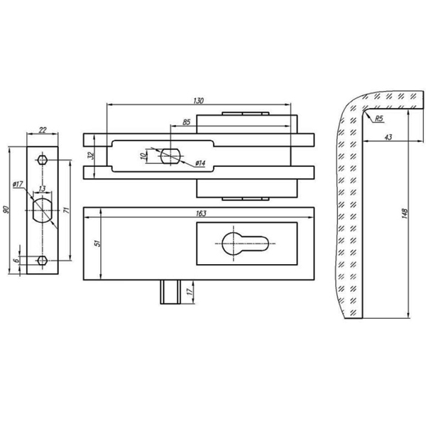 Описание Замок накладной GLASS-M-TECH EK-51 для барных стеклянных дверей сатин