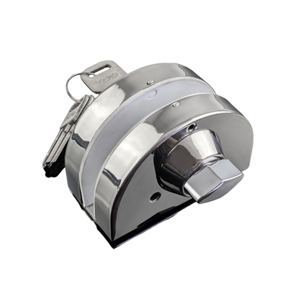 Материал изготовления – нержавеющая сталь SS 304. Это прочный и долговечный материал, защищающий поверхность от ржавчины и коррозии. Потому замки из нержавеющей стали можно расслабленно ставить в помещениях с завышенной влажностью (ванная комната либо на улице). Монтаж данного типа замка производится очень легко. Двойной корпус позволяет надежно зажать между собой стекло толщиной 8 мм. Это очень удобно и практично, и не требует сверления отверстий в холсте.