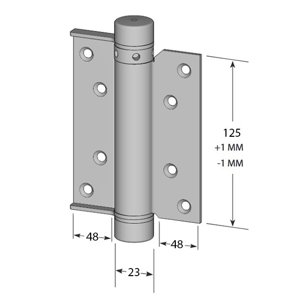 Петля подходит для полотен с максимальной шириной 1200 мм, высотой 2500 мм и толщиной 25-30 мм. Максимальная нагрузка на 2 петли составляет 48 кг.